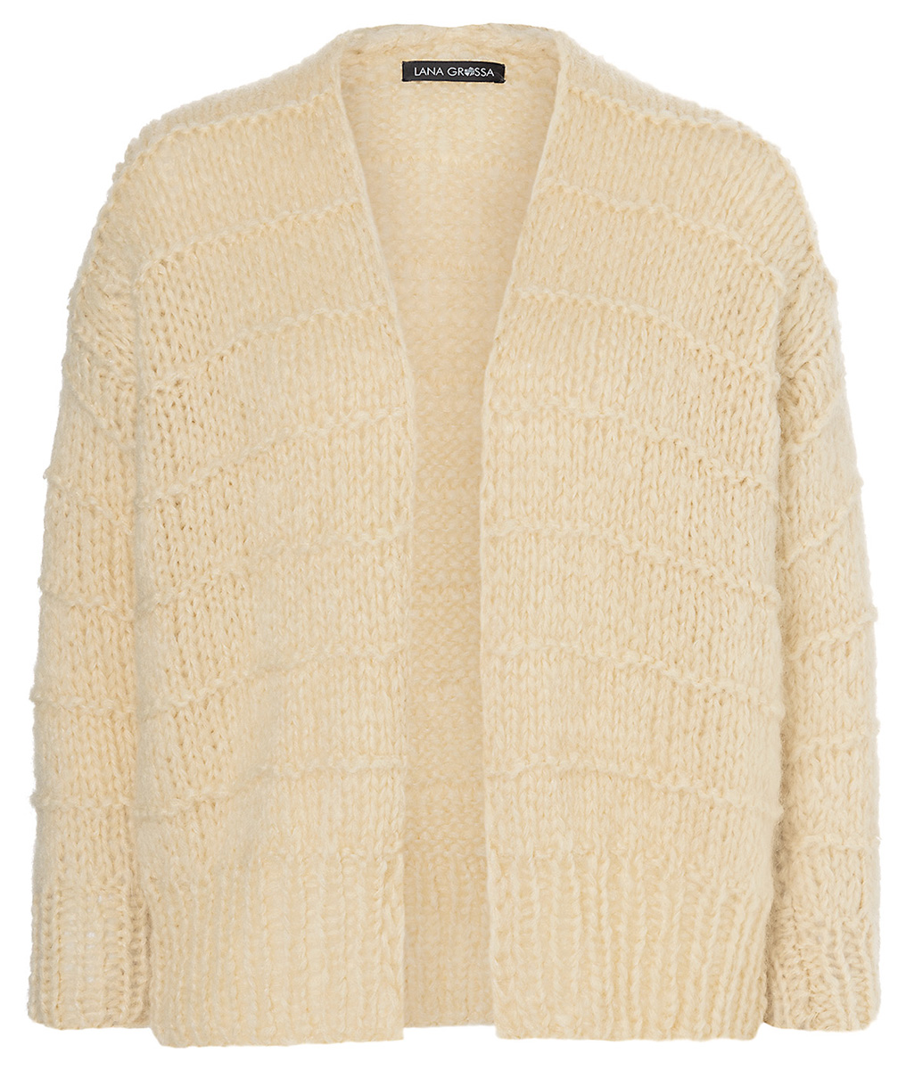 400 (450–500) г беже- вой (цв. 7) пряжи Lala Berlin Brushy (42% мохера (суперкид), 38% овечьей (мерино- совой) шерсти, 20% полиамида, 135 м/50 г) фирмы Lana Grossa; прямые спицы № 10 и № 12