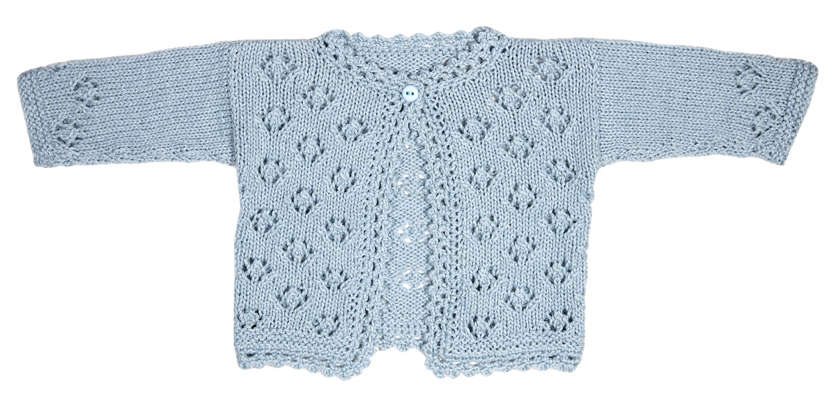 Lana Grossa Cool Wool (100 % шерсть, длина нити 160 m/50 g) 100 (100/150) г серо голубой (цв 2037) и 50 г белый (цв 431); сп. № 3,5, кр. сп. № 3,5 длиной 40 см, чул. сп. № 3,5, крючок № 3; пуговица 15 мм Ø