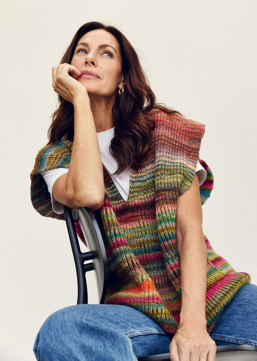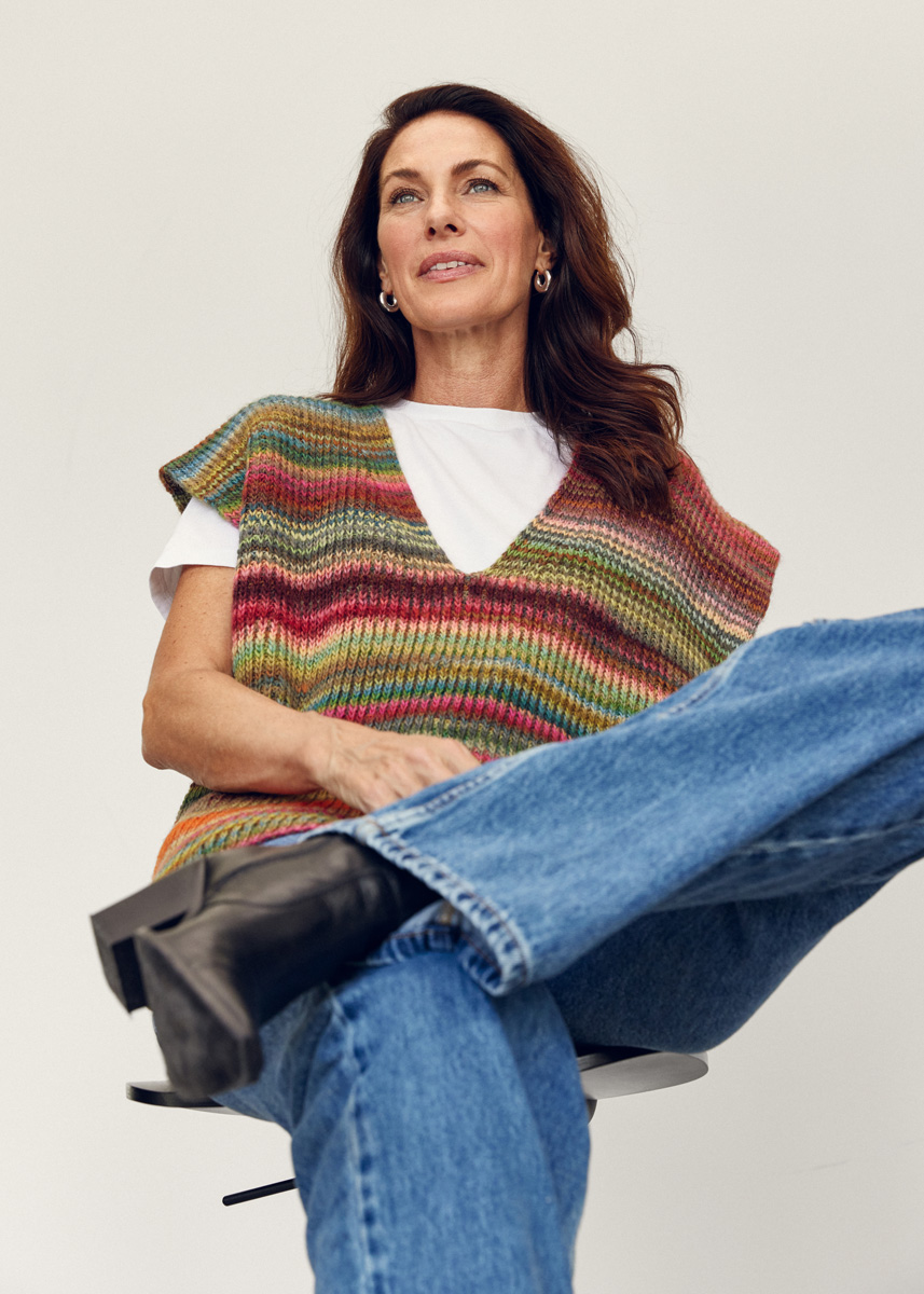 400 (500–500) г красной/цвета красного вина/петрольной/ зеленой/серо-коричневой/коньячной (цв. 106) пряжи Colorissimo 2 (100% шерсти мерино экстрафайн, 300 м/100 г) фирмы Lana Grossa; прямые спицы № 4