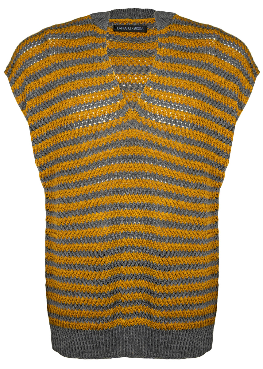Lana Grossa Cool Wool Big (100% шерсть, длина нити 120 m/50 g), 300 (350 – 400) г хаки (цв 985) и Lana Grossa Cool Wool Big Mélange (100% меринос Gots, длина нити 120 m/50 g), 200 (250 – 300) g янтарный меланжевый (цв 214); сп. № 4, 2 марк