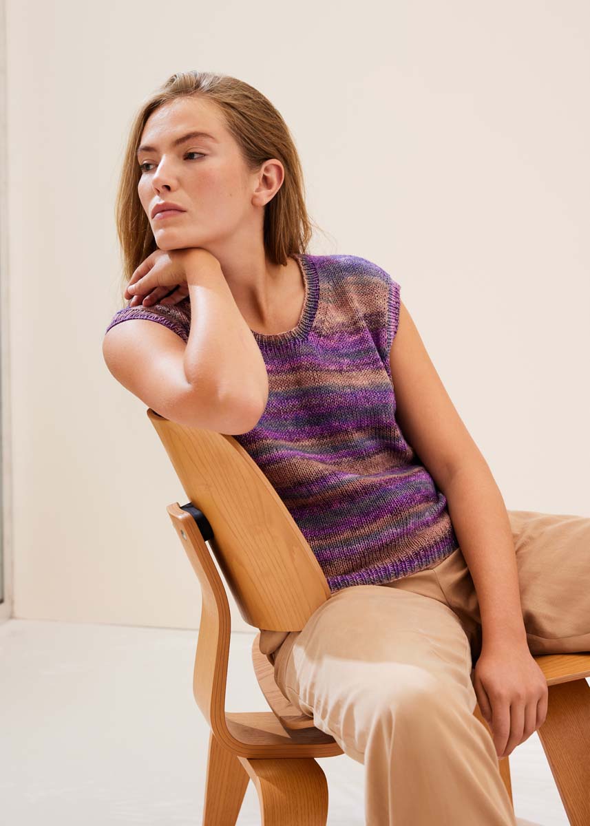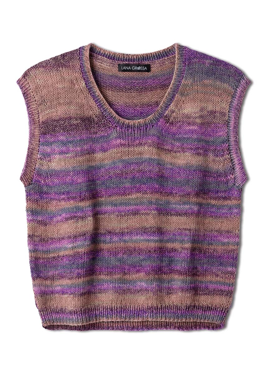 Lana Grossa-Qualität „Gianna“ (80 % хлопок (био), 15 % шерсть (меринос), 5 % кашемир, длина нити = ca 180 m/50 g): ок 200 (200–250–300) г фиолетовый/бургунд/ серый/сирень/серо-синий/легко коричневый (цв 3); сп. № 4 и 4,5; 1 кр. сп. № 4.