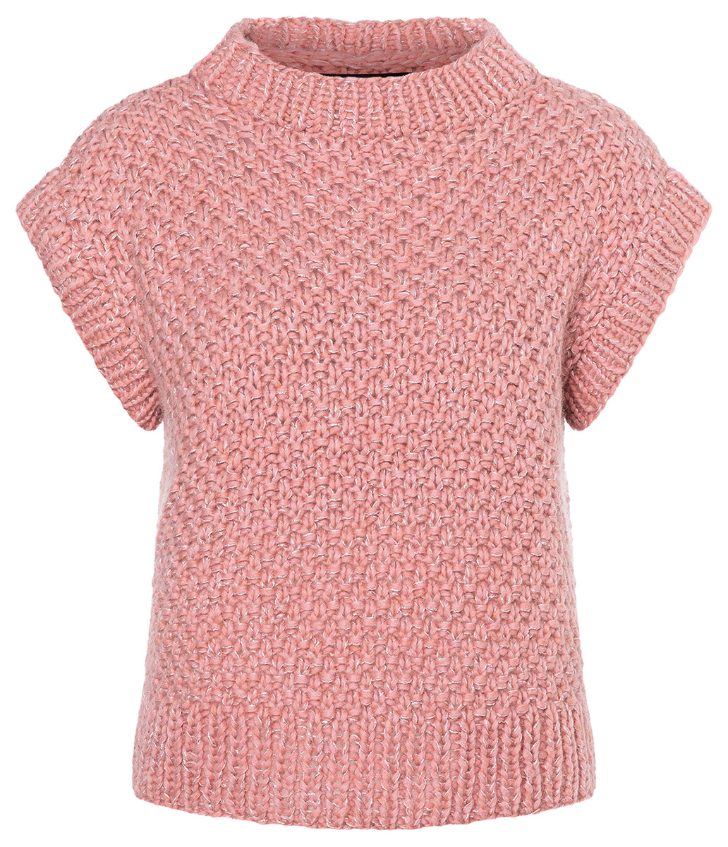 Lana Grossa Lala Berlin Lovely Cotton (75% шерсть (меринос), 25% хлопок, длина нити 90 m/50 g), 300 (350 - 400) г лососевый (цв 26) и Lana Grossa Brillino (83% вискоза, 17% метал. фибра (люрех), длина нити 200 m/25 g), 75 (100 – 100) г белый/розовый (цв 8); сп. № 8 и 1 кр. сп. № 8, 40 см