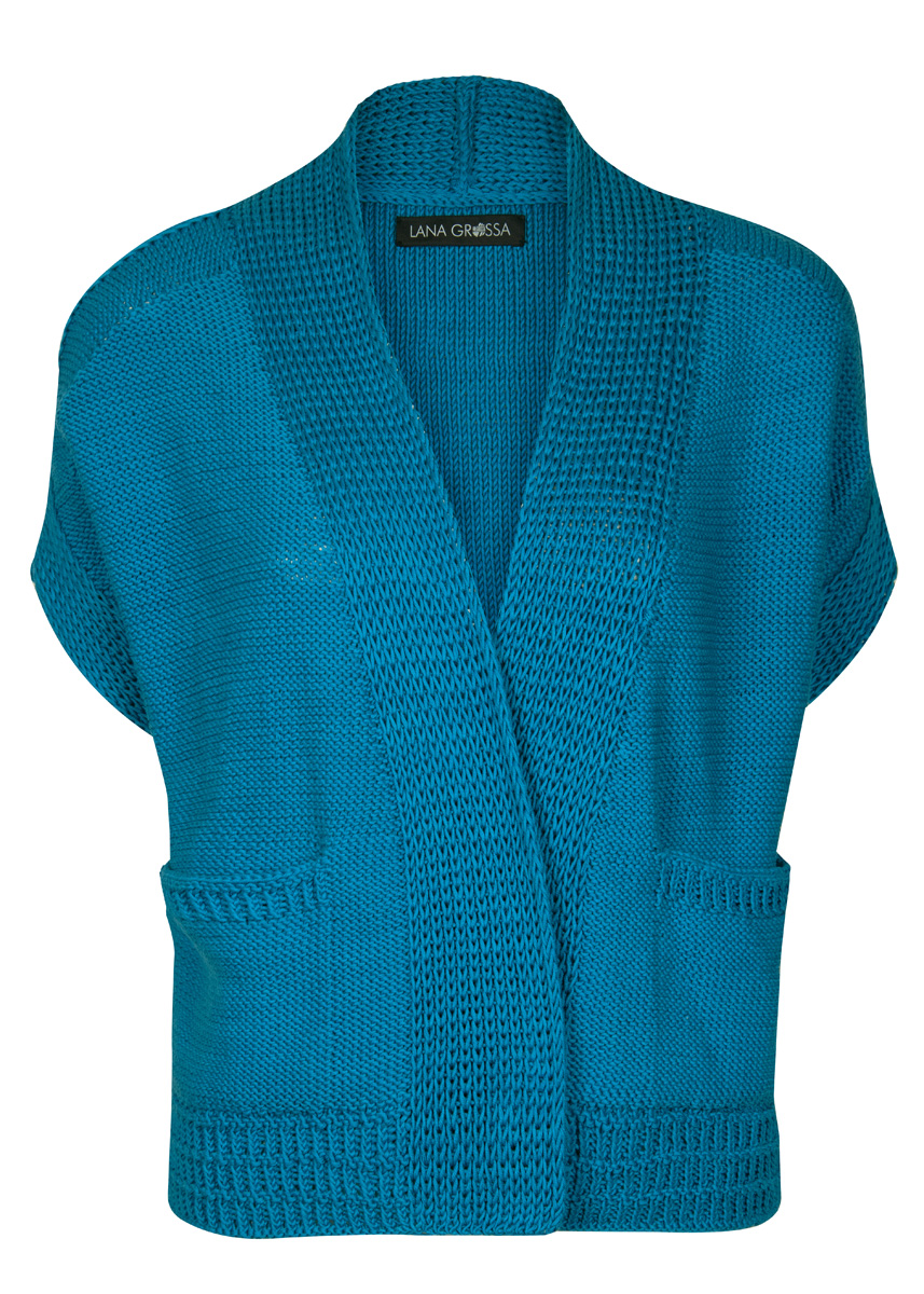 400 (450–500) г петрольной (цв. 17) пряжи Pima (100% хлопка пима, 125 м/50 г) фирмы Lana Grossa; прямые спицы № 4.